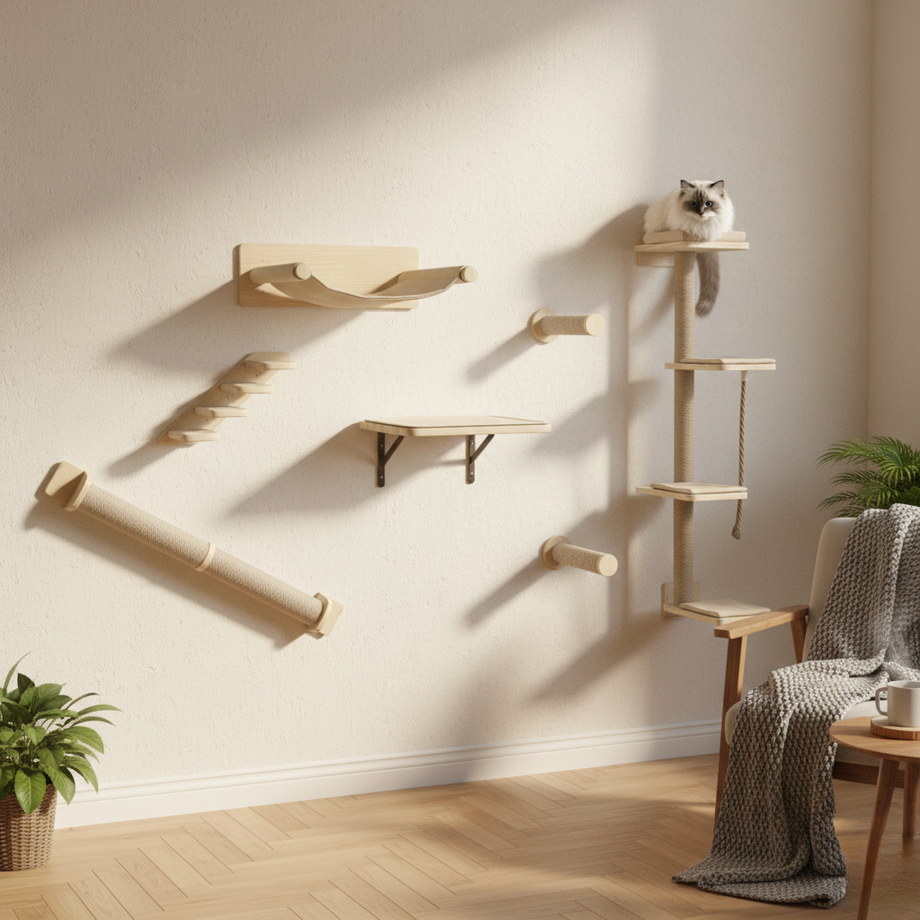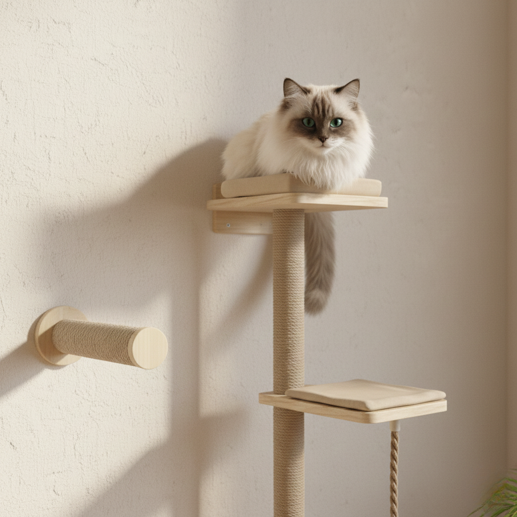 Arbre à Chat Mural en Bois Milo – Créez Leur Univers Vertical Sur Mesure
